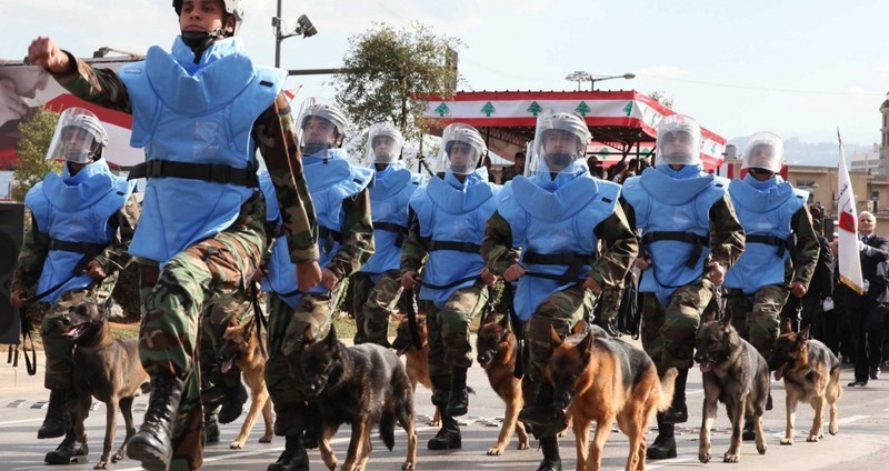 А так выглядят доблестные солдаты-кинологи из дивизиона К7 с их четвероногими подчиненными. Натренированные ливанские собаки разорвут каждого, кто встанет на их пути. А если никто не встанет, то они от грусти и невостребованности разорвут своих собственных хозяев. Поэтому даже на военном параде в Бейруте все инструкторы одеты в специальные противособачьи костюмы. Смешно, зато безопасно.