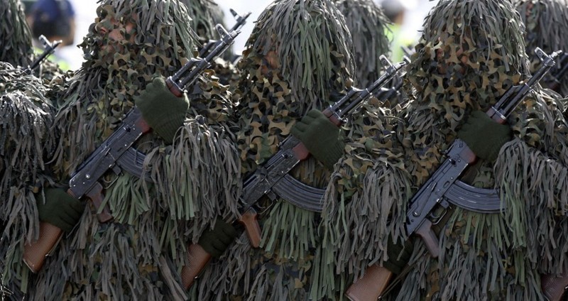 Даже фотограф, снимавший парад иранской армии в Тегеране, до конца не был уверен, иранская ли армия перед ним. Согласись, по китайским автоматам Калашникова и зеленым отходам швейного производства очень трудно определить не только звание, но и род войск. Зато камуфляж в виде бурной растительности здорово помогает обнаружить иранского солдата в пустыне.