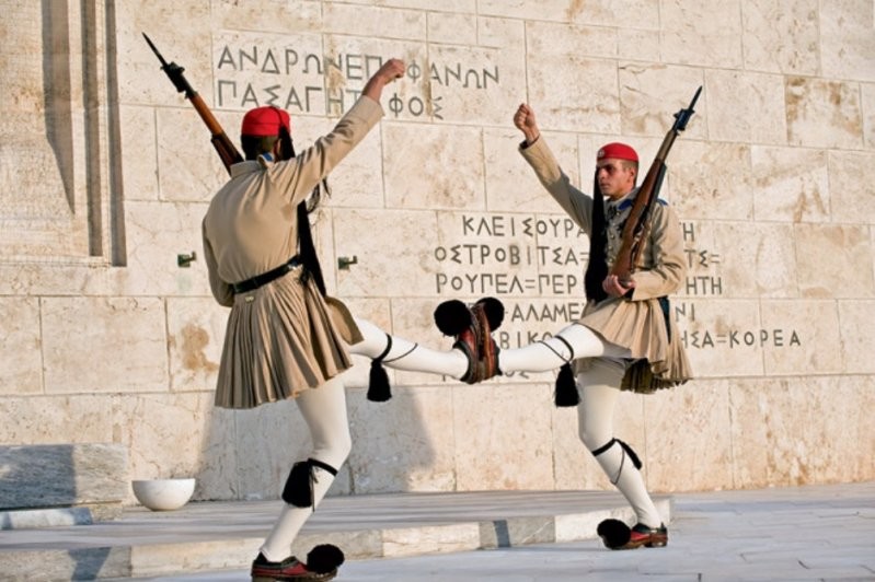 Это странно, но нередко в самую смешную форму наряжают солдат почетного караула, которые охраняют вполне серьезные и даже святые места. Вот так выглядят греческие эвзоны, марширующие у могилы неизвестного солдата в Афинах. Не всем туристам удается не рассмеяться при виде этих парней в совершенно клоунских одеяниях.