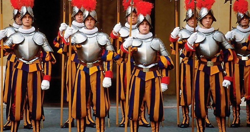 У Ватикана нет своей армии. Папу Римского охраняет наёмный корпус Швейцарской гвардии, чья форма была разработана Микеланджело и не менялась уже 400 лет.