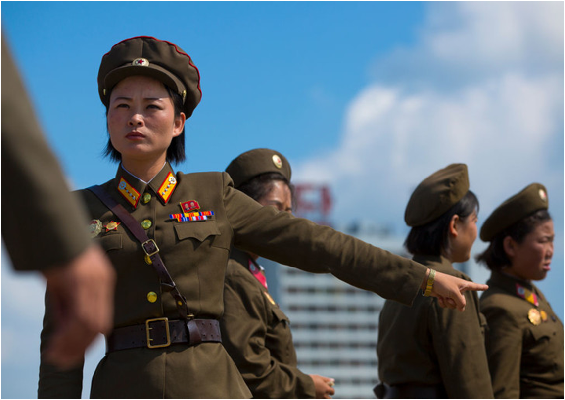 Строгая, скромная, максимально функциональная форма солдат КНДР в чем-то перекликается с формой советского солдата времен ВОВ. К слову, с 2015 года женщины Северной Кореи проходят обязательную военную службу, прямо как в Израиле. Потому с 18 до 25 отслужить обязана каждая девушка.