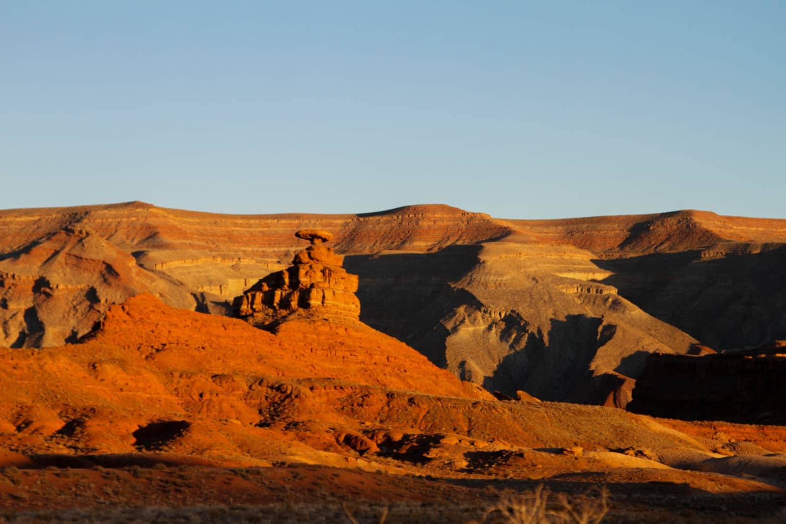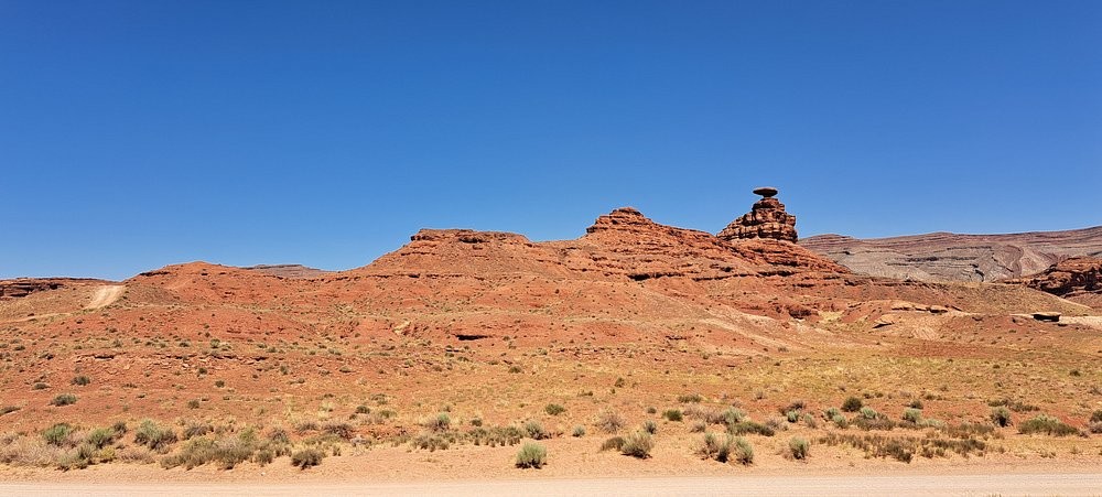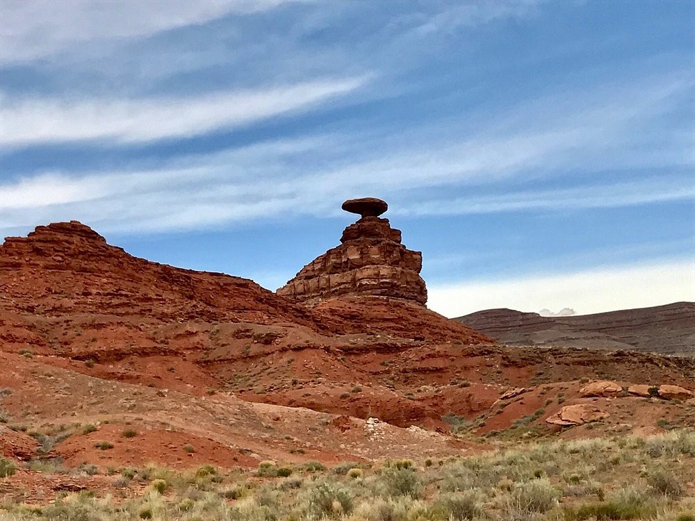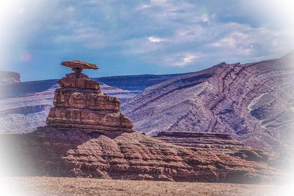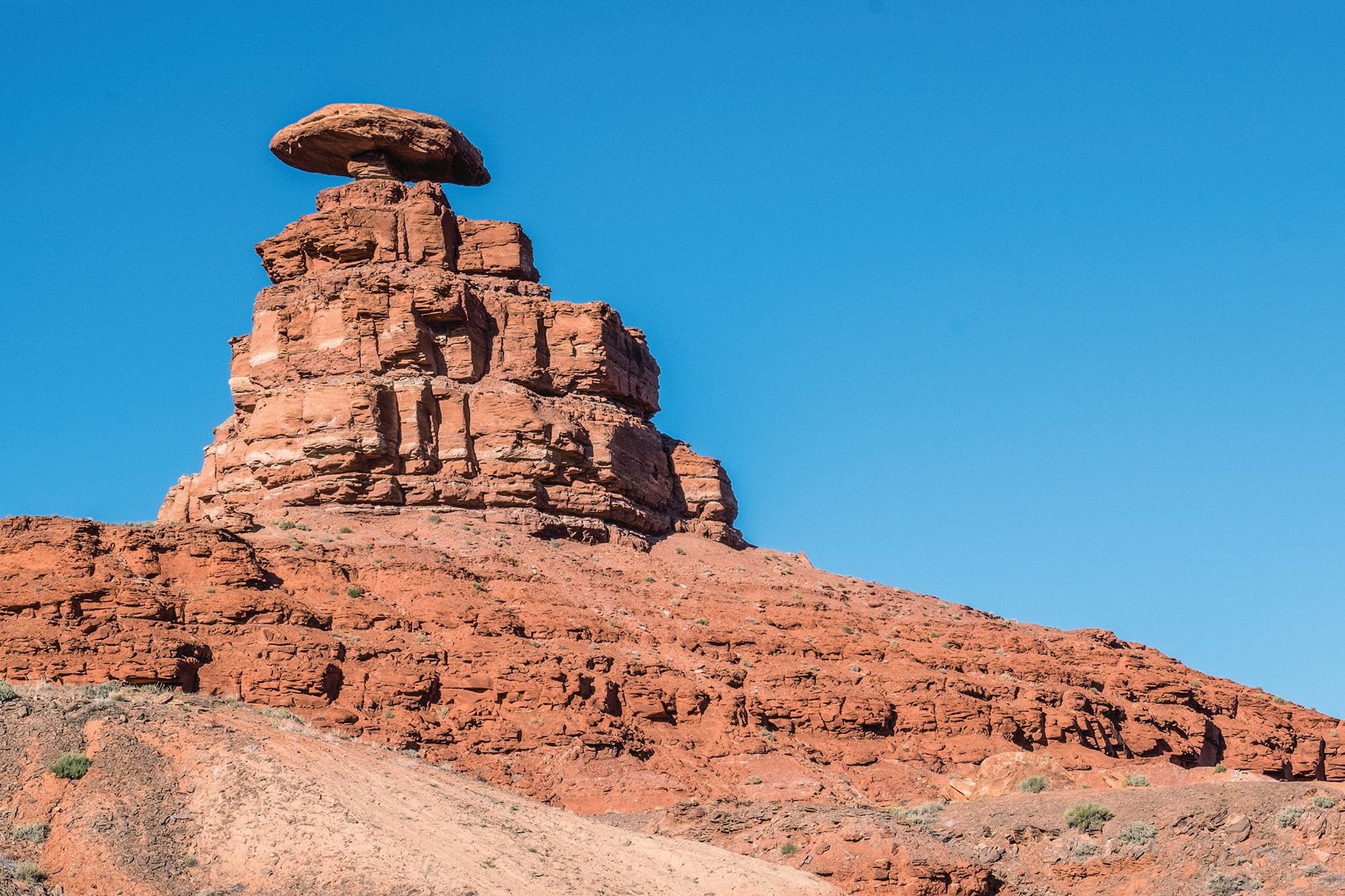 В пустынном уголке Юты, к северо-востоку от Долины монументов, стоит причудливое творение природы — скальное образование Мексиканская Шляпа.
