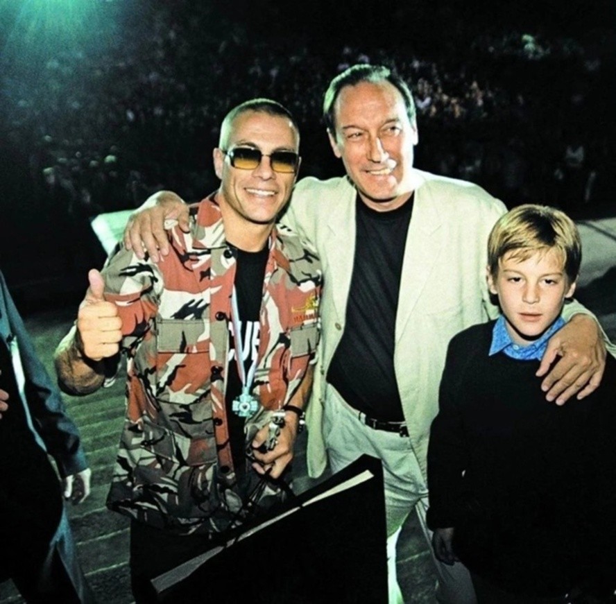 Жан Клод Ван Дамм, Олег Янковский и его внук Иван на фестивале "Кинотавр", Сочи, 2001 год