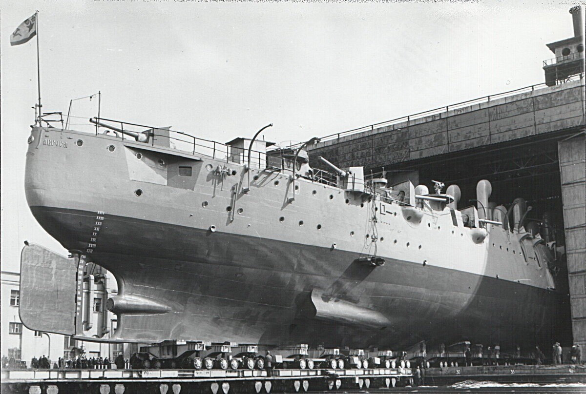 Обновлённая "Аврора" выходит из эллинга на Турухтанных островах.