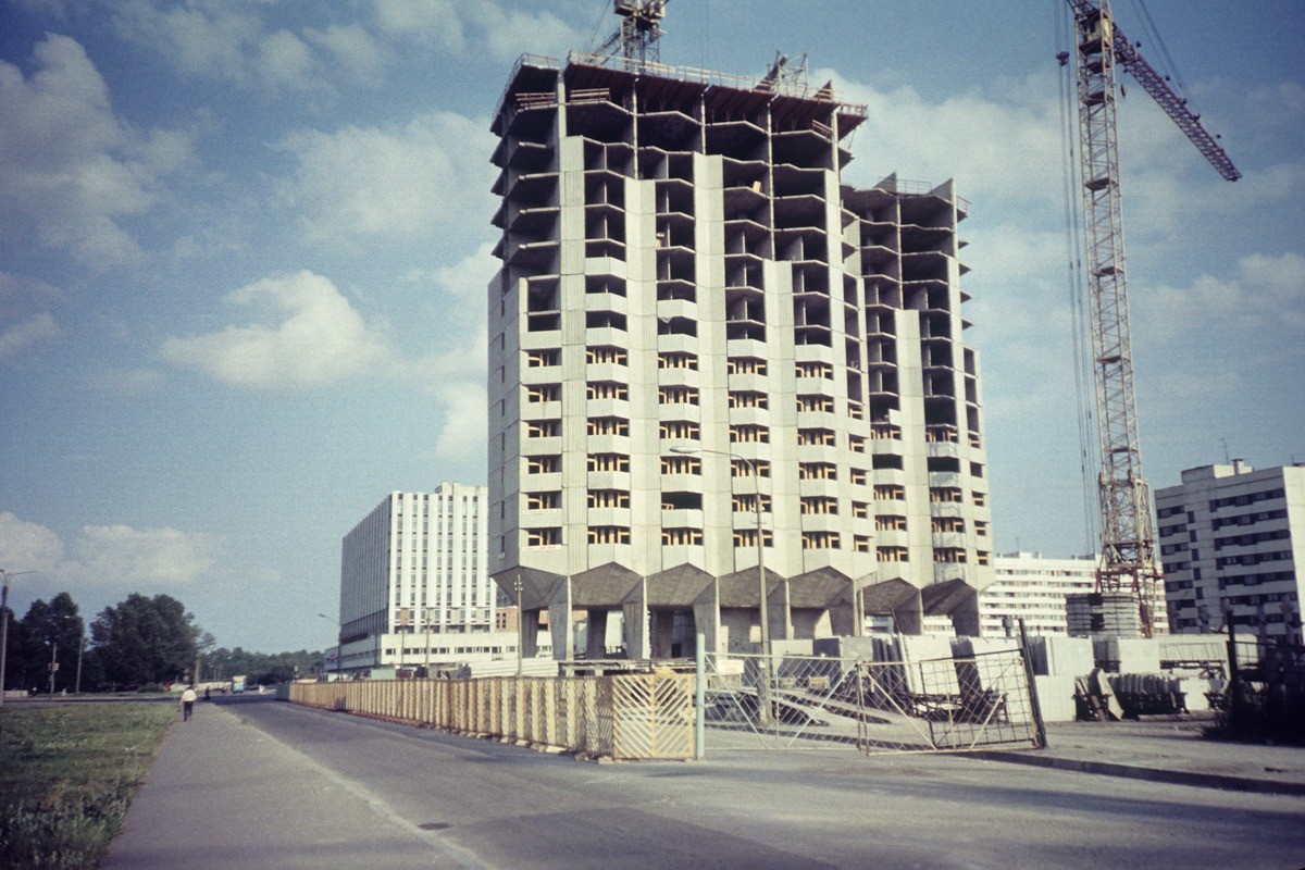 Строительство знаменитых "домов на ножках" на набережной реки Смоленки.