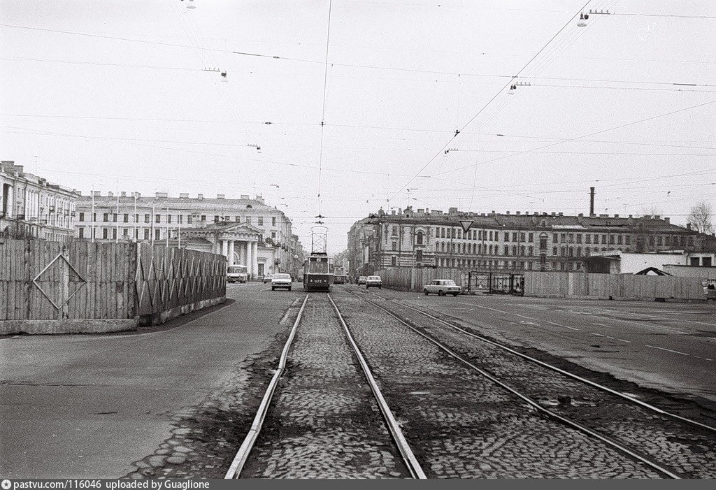 Сенная площадь (а тогда - площадь Мира) постепенно обрастает заборами из-за строительства станции метро "Садовая".