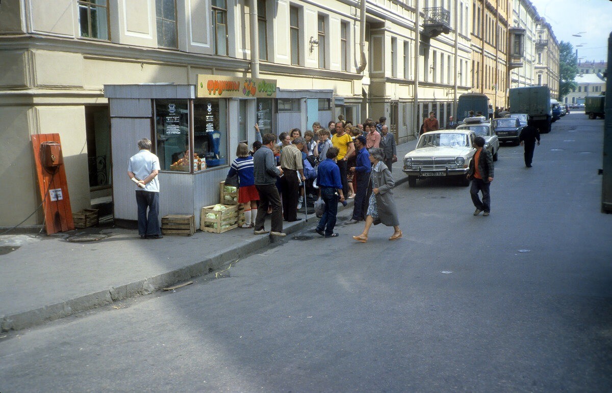 Ларёк "Фрукты-овощи" в Кирпичном переулке (сейчас напротив этого места находится вестибюль станции метро "Адмиралтейская).