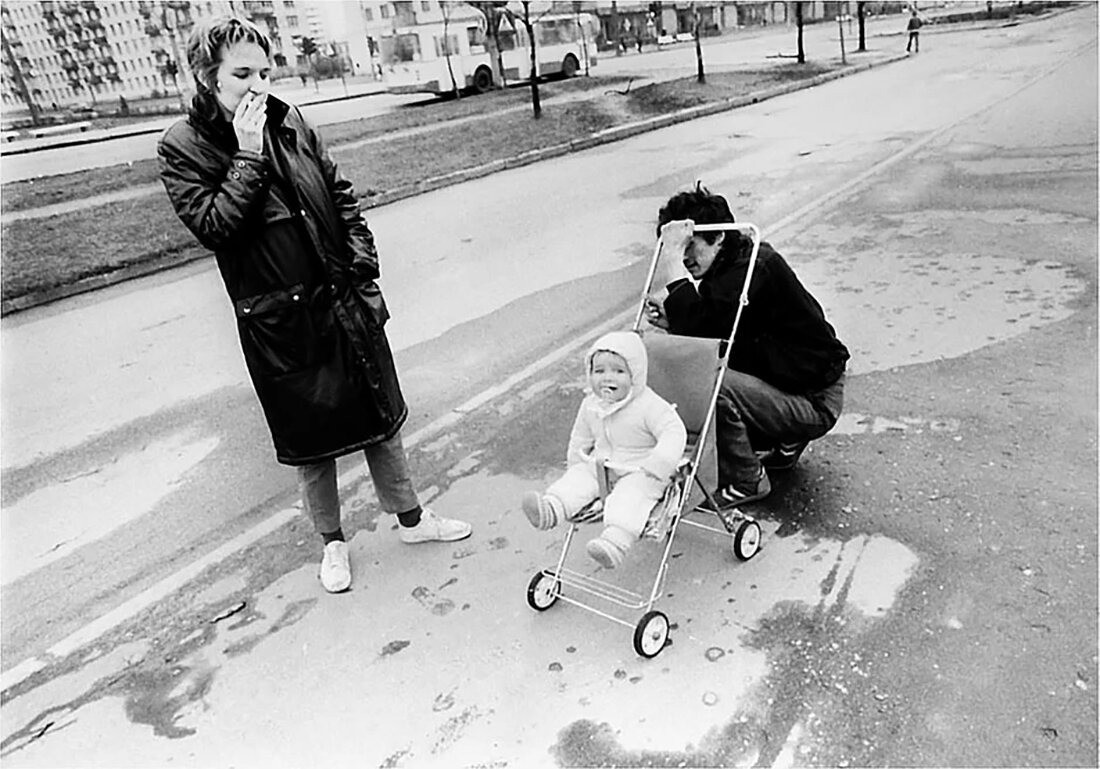 Виктор Цой, его жена Марьяна и сын Александр гуляют по проспекту Ветеранов