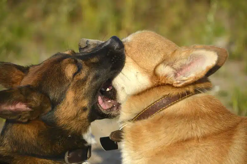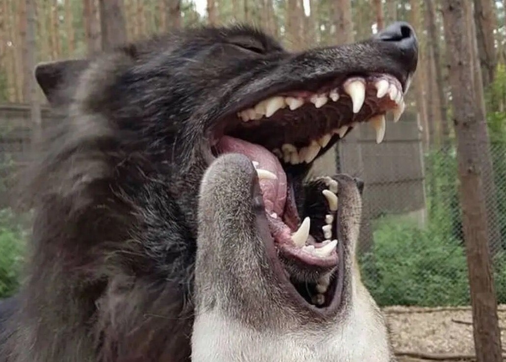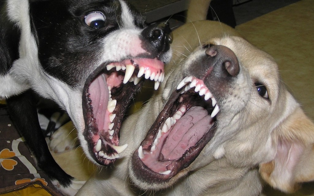 А бывает и так, что укусы за морду не несут никакой смысловой нагрузки. Собакам просто нравится так играть: открывать варежку, скалиться, рычать и мягко кусать друг дружку за хлеборезку — этакий ротовой спарринг. Так же, как мужчины в компании друзей начинают шуточную борьбу. Выглядит жутковато, но бояться нечего. Барбосы просто развлекаются и сбрасывают лишнее напряжение, никто никому нос не откусит.
