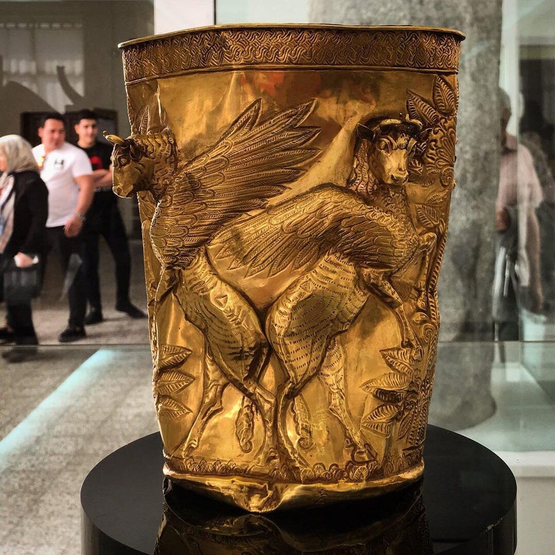 Кубок 1400 года до нашей эры. Изображает четырёх мифических крылатых быков в динамичных позах с расправленными крыльями