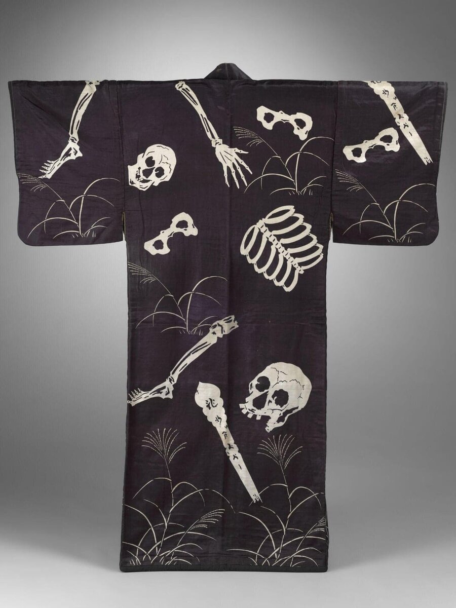 Кимоно, украшенное скелетами, Япония, 1840–1860 годы