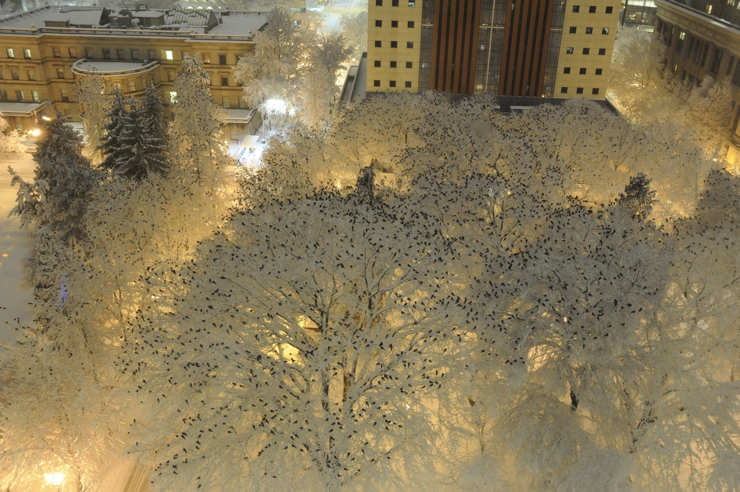 12. Эта завораживающая картина - вид сверху на деревья, где отдыхают вороны