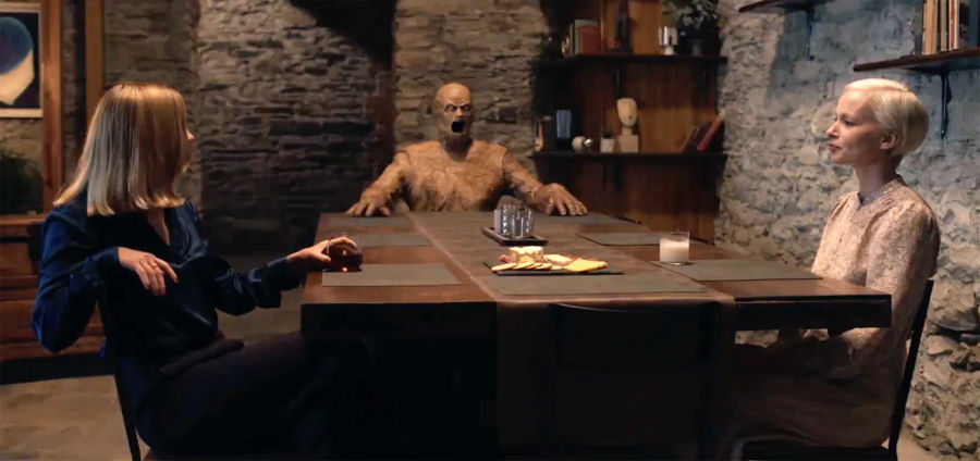 Главная звезда фильма — голем, деревянная фигура в человеческий рост, сидящая неподвижно на протяжении нескольких сцен. Она ничего не делает, а окружающие воспринимают ее как данность. И именно поэтому это страшно. Ты ждёшь, что вот сейчас она пошевелится — но этого не происходит. Это ожидание становится пыткой.