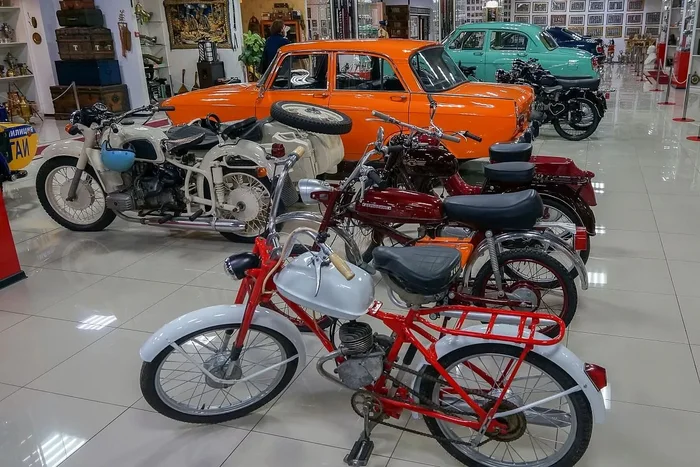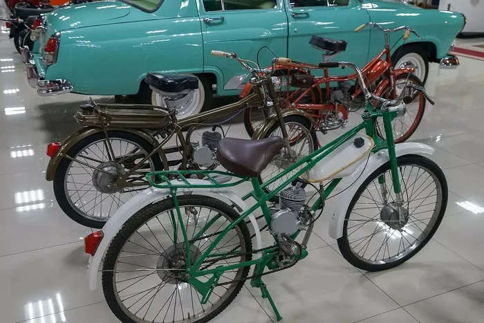 Помимо машин в музее представлены и более демократичные, а потому и более популярные и распространенные в СССР средства передвижения — велосипеды, мопеды, мотороллеры.