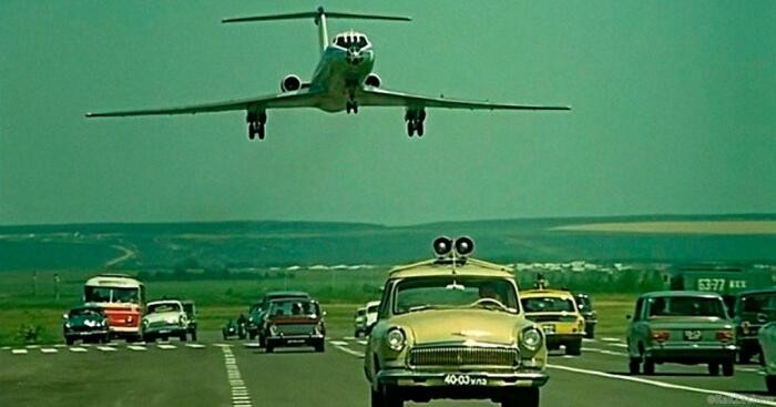 В этом случае возникает вопрос: как же тогда Эльдар Рязанов убедил съемочную команду сажать пассажирский самолет на шоссе? На самом деле все очень просто. Никакой самолет на шоссе Москва-Минск во время съемки «Невероятных приключений итальянцев в России» не сажали. Снимали эпизод в аэропорту Ульяновска, где под автобан была тщательно «загримирована» одна из нормальных взлетно-посадочных полос. При этом сажали в фильме в действительности не пассажирский лайнер, а учебно-тренировочный самолет Ту-134. Вот такая магия кино.