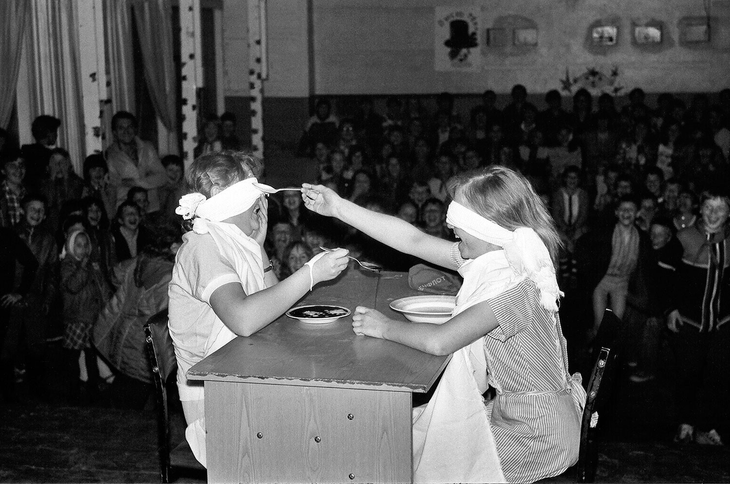 Сподобила меня однажды знакомая посетить детский праздник в парке. Я с женой и дочкой, она с сыном, он с рождения не видит. На тот момент ему лет десять было. А там конкурсы, причём добрая половина из них построена на принципе: "а давайте-ка, дети, мы вам завяжем глазки и попросим чего-нибудь сделать". Ну там определить дары природы на ощупь, пройти лабиринт, держась за верёвку и всякое такое. По-моему что-то наподобие того, как на фото, тоже было.