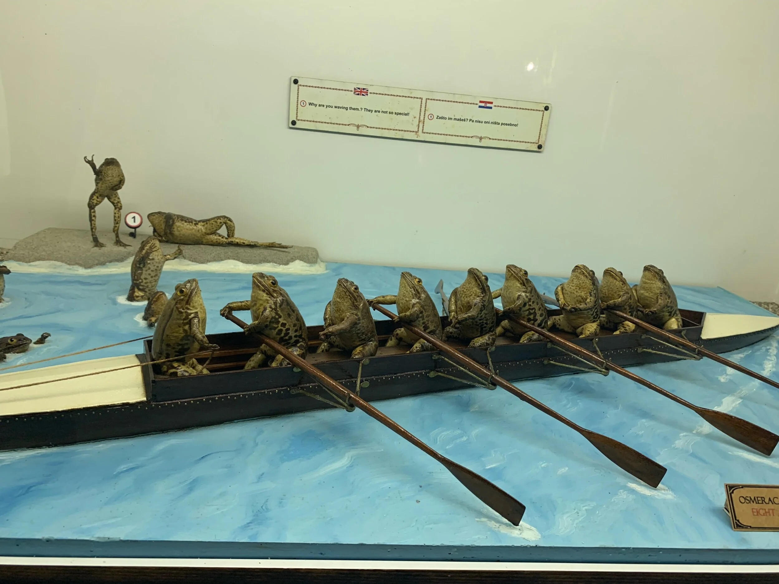 «Я стою перед самым необычным музеем в Европе. Он посвящён мёртвым лягушкам. Мы заплатили 13 евро, и это первое, что нас встретило. И, как вы можете судить по выражению моего лица, я был в полном замешательстве».