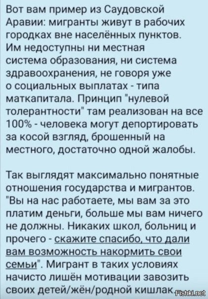 с теми же субсидиями, о которых вы тут вспомнили, выдают не многодетным, а малоимущим. и как я уже писал не раз чтобы тебя признали этим самым малоимущим это надо либо последним маргиналом быть, либо работать в серо-черной зоне (как большинство мигрантов). т.е. весь + от работы мигрантов получают частный бизнес (буржуи), а - в виде нагрузки на все виды бюджета получает государство.
