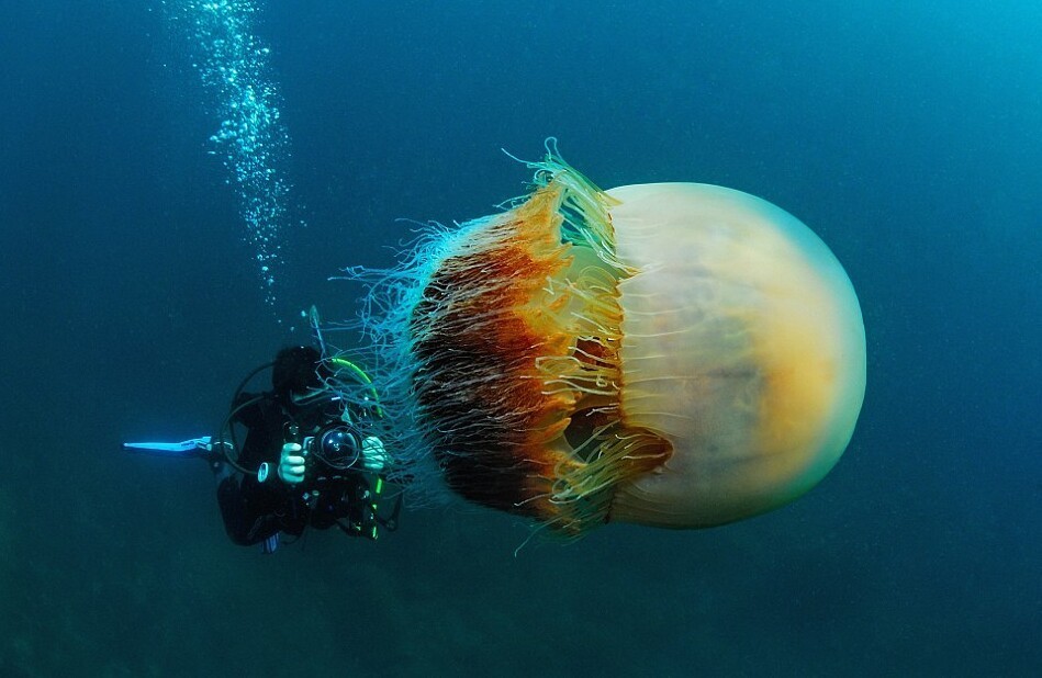 Phacellophora camtschatica известна как медуза-яичница, является одной из крупнейших видов медуз.