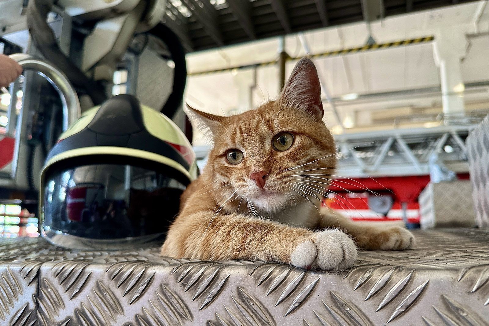 Рыжика спасли еще котенком. Огнеборцы заметили его в коробке, когда проверяли гидранты на одном из объектов. Теперь мурлыкающий спасатель служит в пожарно-спасательной части №7 Управления по ЮАО ГУ МЧС России по г. Москве: ходит на разводы и следит за порядком в части. Он очень ласковый и никого не обделяет вниманием.
