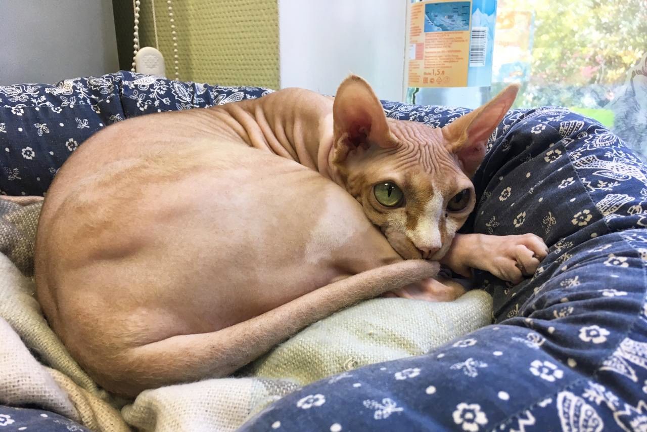 А канадский сфинкс Гаврюша - настоящая звезда госветклиники "Останкино". Этот кот почти половину жизни был домашним, но хозяева отказались от него. Сейчас ему 13 лет, а в ветклинику он попал уже достаточно взрослым - семилетним. В семье, где он жил, появился ребенок, и из-за аллергии малыша с Гаврюшей были вынуждены расстаться.