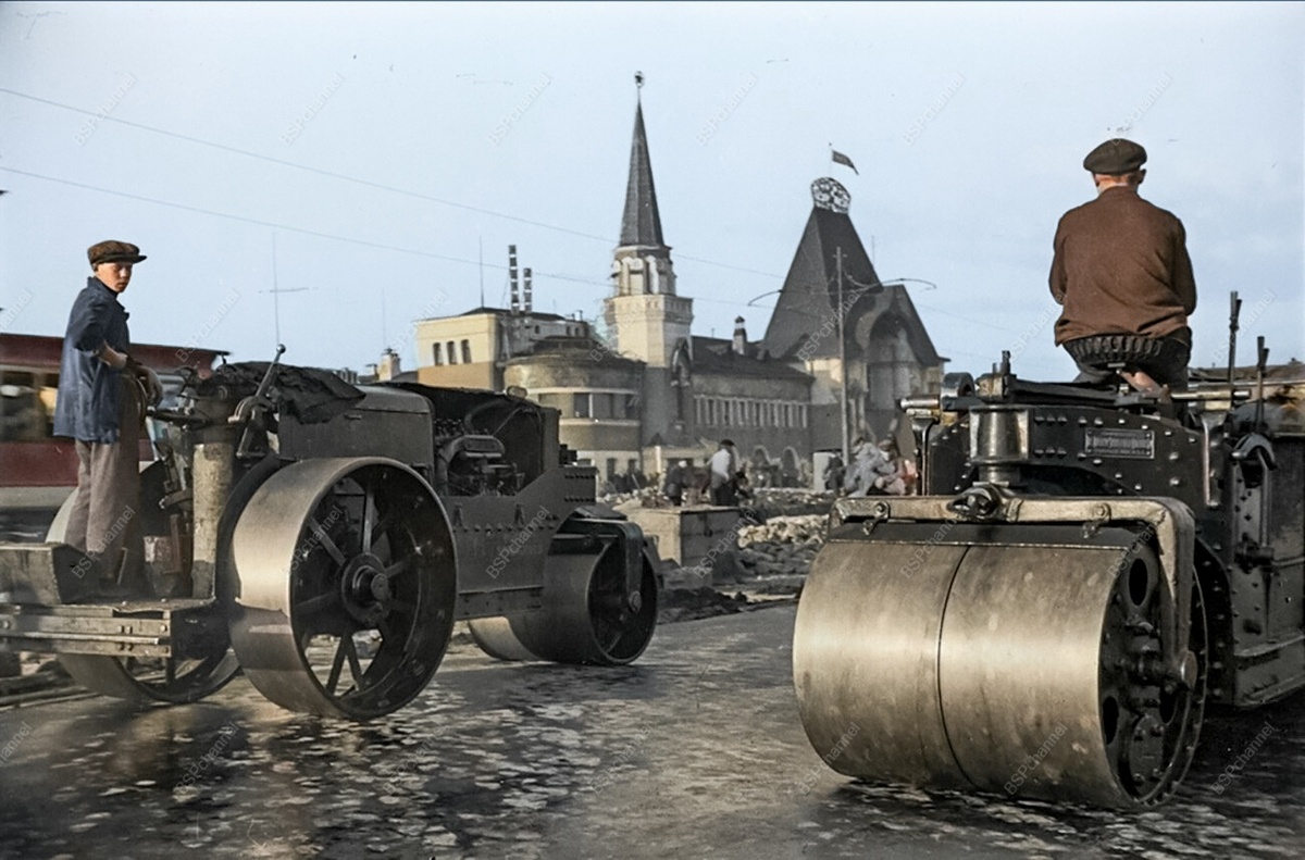 Асфальтировка Комсомольской площади. Москва, 1930-е