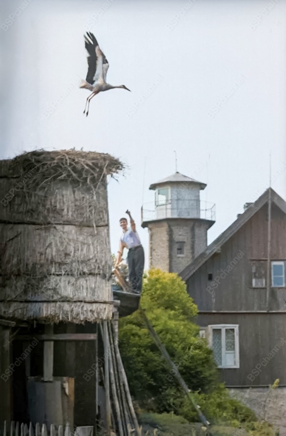 Гнездо аиста на острове Русне, Литовская ССР, 1966 год