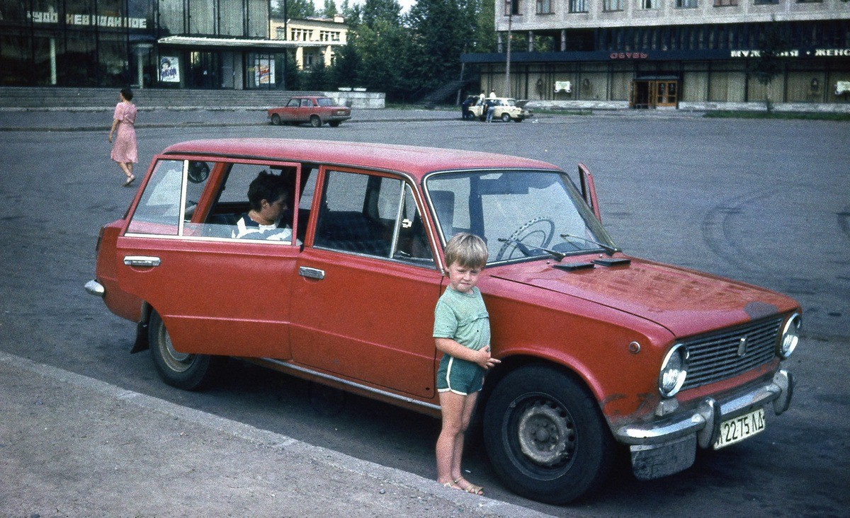 ВАЗ-2102 с чёткими брызговиками около кинотеатра "Невский", что на Народной улице.