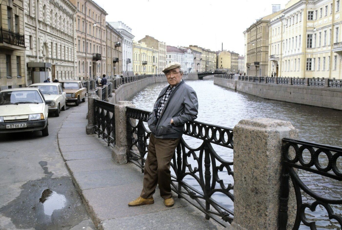 Актёр театра и кино Евгений Лебедев на набережной реки Мойки.
