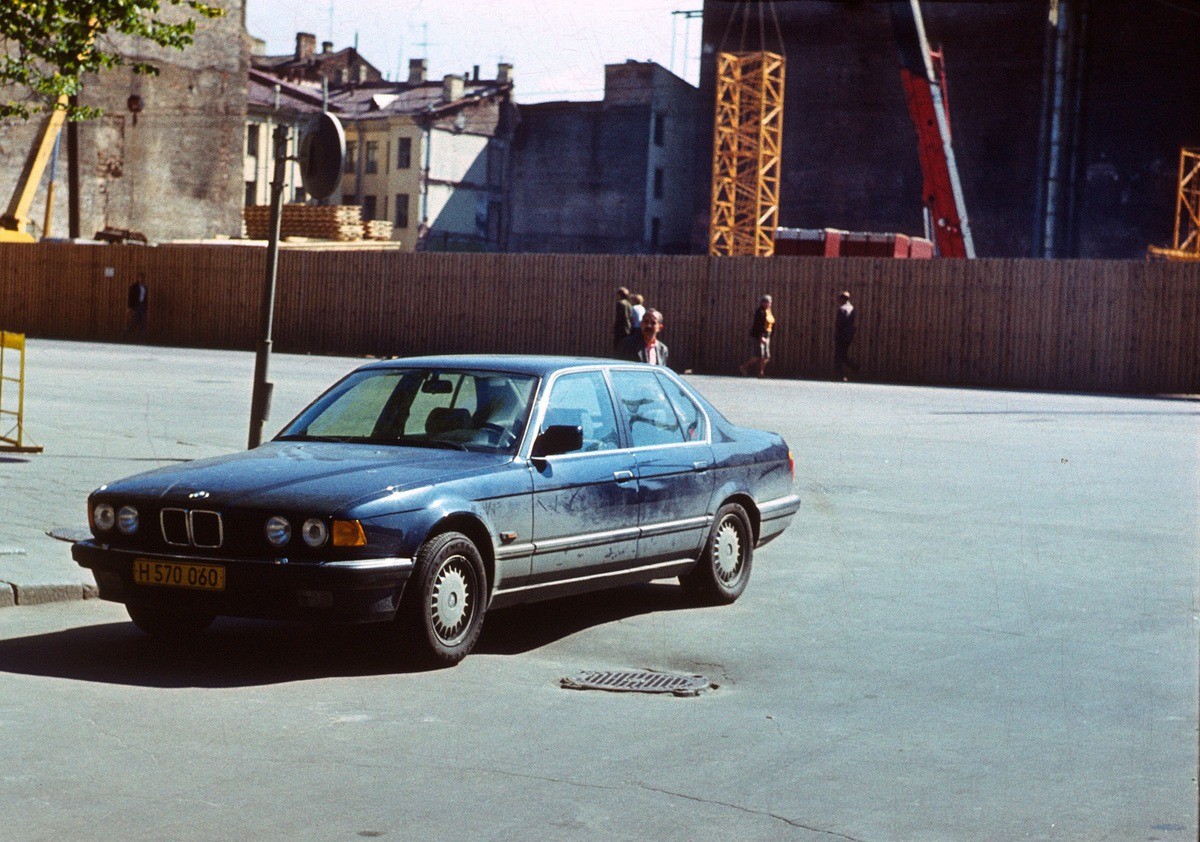БМВ 7-й серии на иностранных номерах. А позади - снесённый «Англетер»