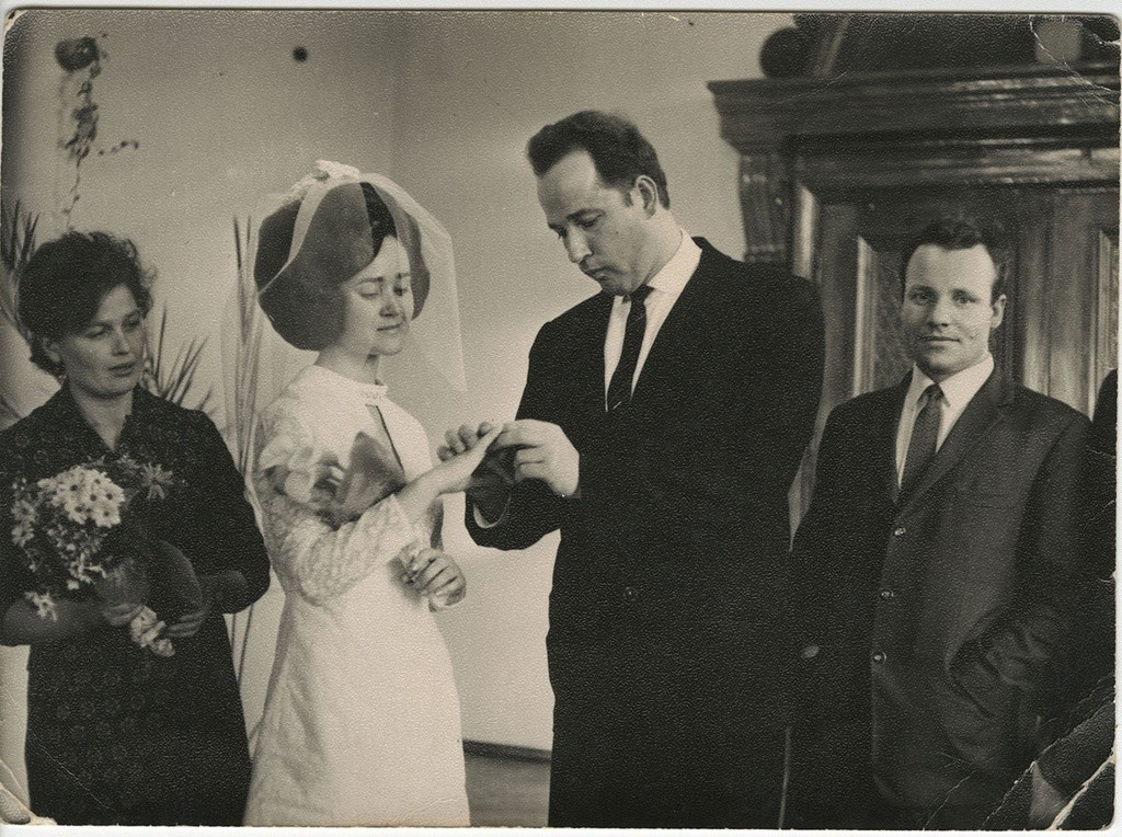 Фотография из архива Натальи Крюковой. Свадьба родителей. 5 июля 1968 года. Неизвестный автор. Ленинград.