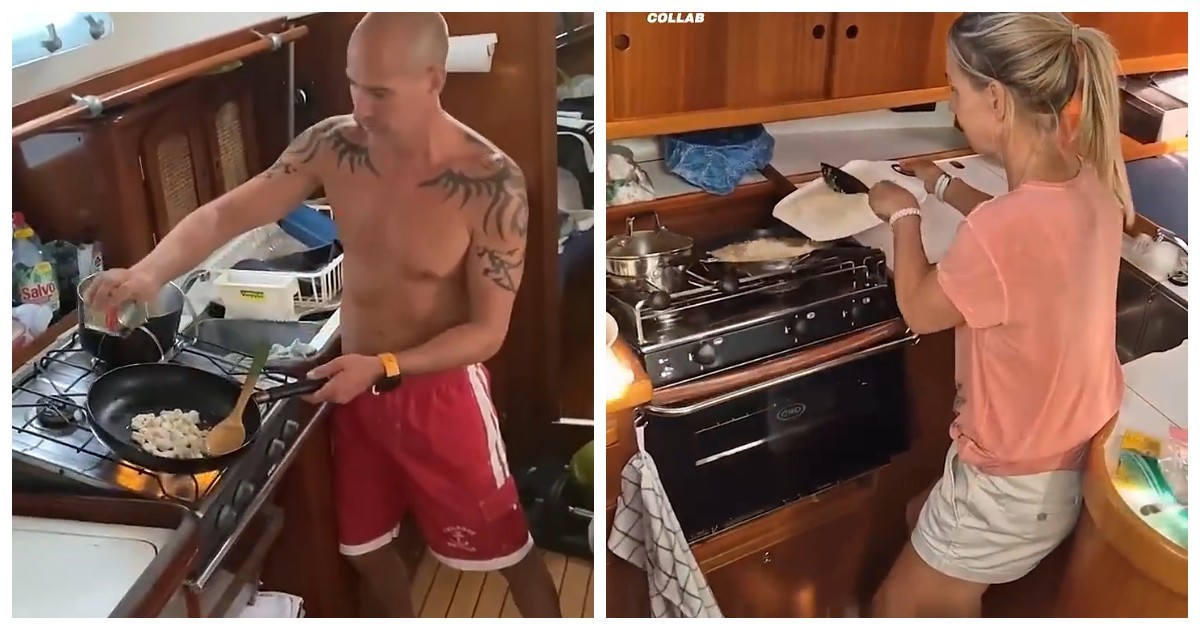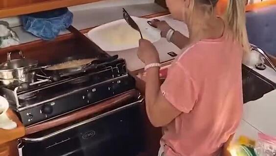 Пока судно поднимается на волне или резко наклоняется, сковорода и кастрюля остаются на месте. Так повара могут спокойно готовить даже при сильном шторме — и ничего не выливается!