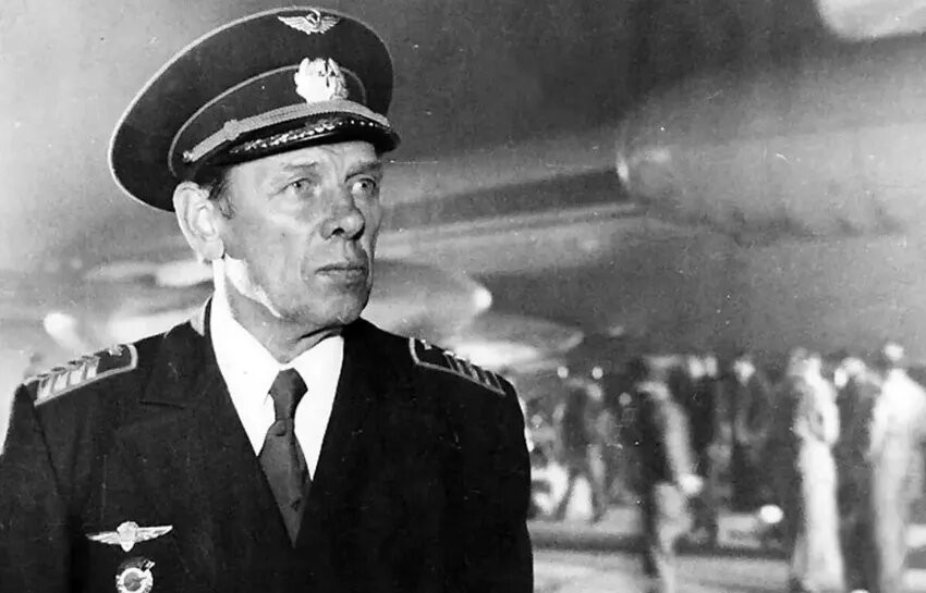 Георгий Жженов в роли летчика Андрея Тимченко. Кадр из фильма Экипаж, 1979, реж. Александр Митта