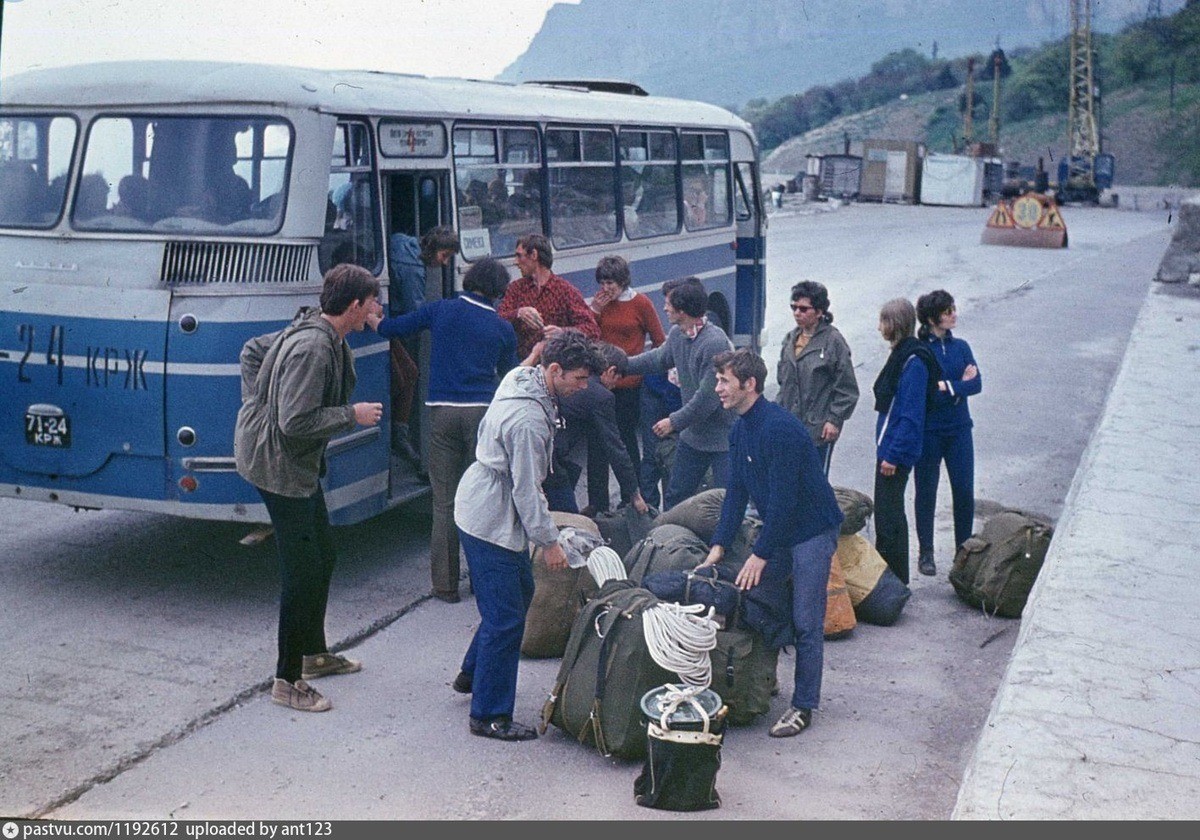 Туристы выгружаются из автобуса на Южнобережном шоссе в районе Понизовки