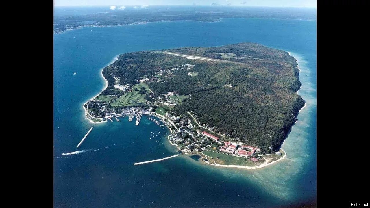 Перед вами одно из самых колоритных мест в США — небольшой остров Макино-Айленд, где уже более 127 лет запрещены автомобили и любой моторный транспорт. Там передвигаются только на лошадях и велосипедах.