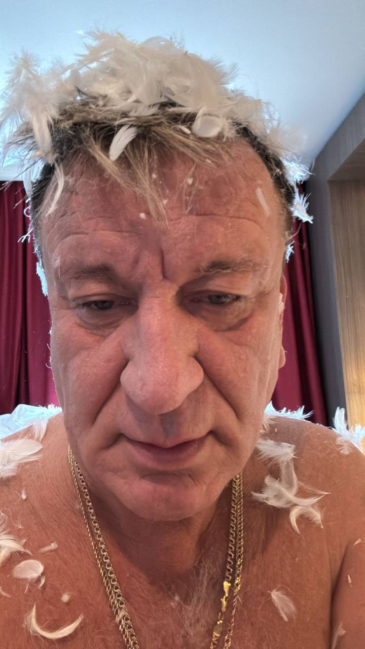 - Проснулся весь в перьях в отеле Новосибирска, - поделился певец на своей страничке в соцсети.