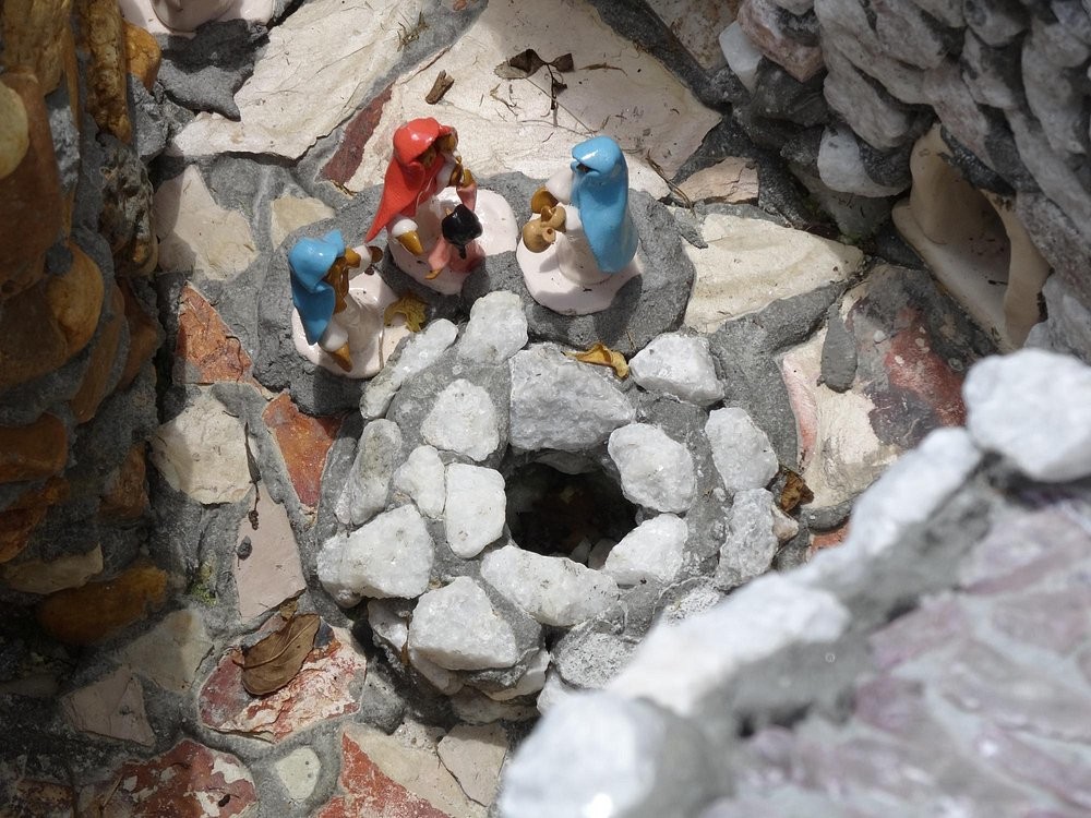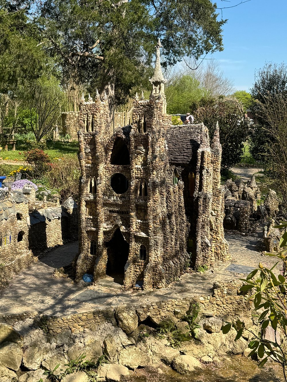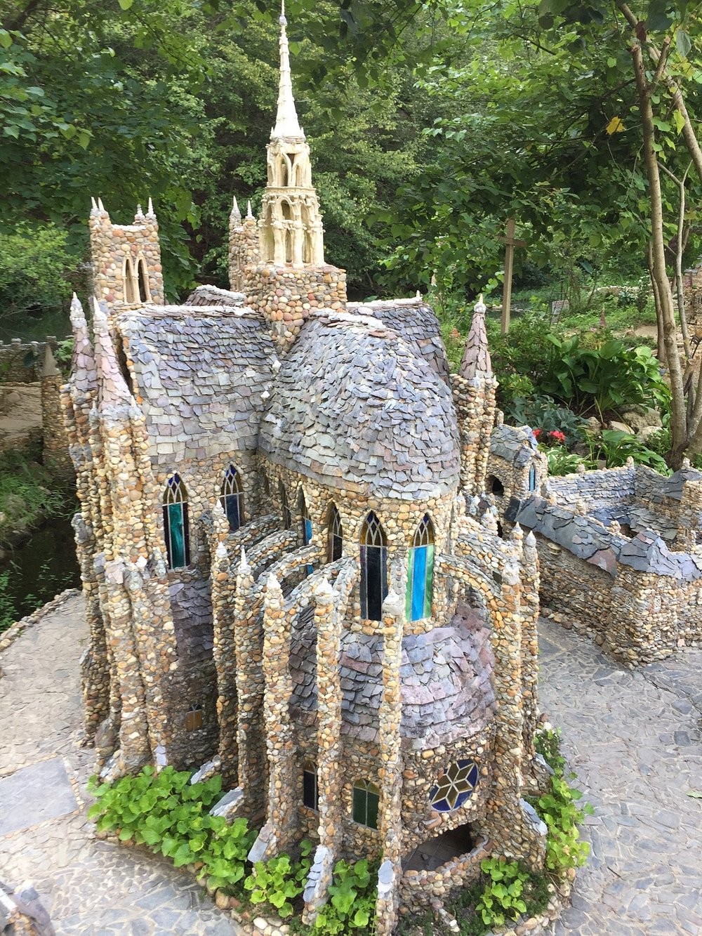 Более 50 крошечных строений, формирующих сад, кропотливо сложены из мелких камушков, ракушек, осколков стекла, проволоки, цемента и других подручных материалов. Прогулка по саду переносит гостей от парижского собора Нотр-Дам с его витражами из цветного стекла до величественных замков, возведённых из гальки и раковин. Интерьеры и закоулки этих сооружений населяют фарфоровые человечки, а по всему ландшафту расставлены небольшие фигурки животных из фарфора.