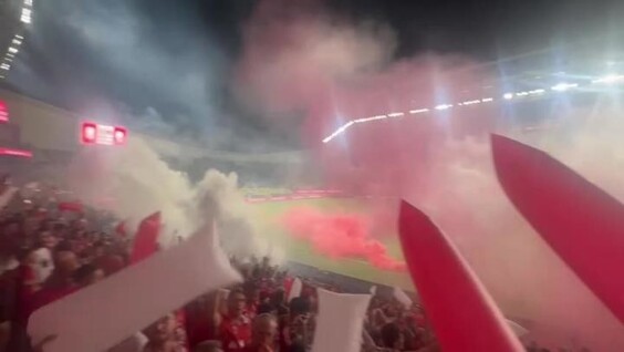 На поле летели дымовые шашки, фейерверки. Арена была окутана дымом, после начались столкновения фанатов. Болельщики высыпали за пределы стадиона, где принялись крушить всё, что попадалось на их пути.