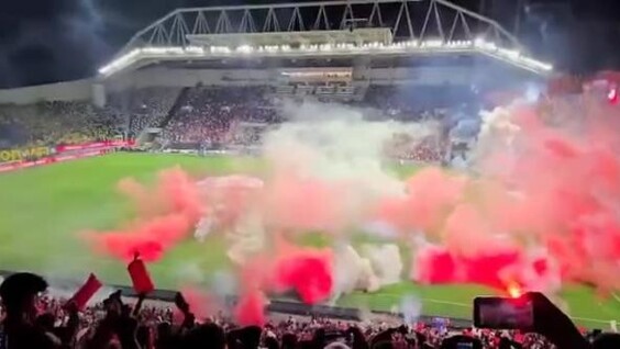 Болельщики забросали поле пиротехникой и вели себя так, что руководство полиции решило не рисковать и отменить дерби до его начала.