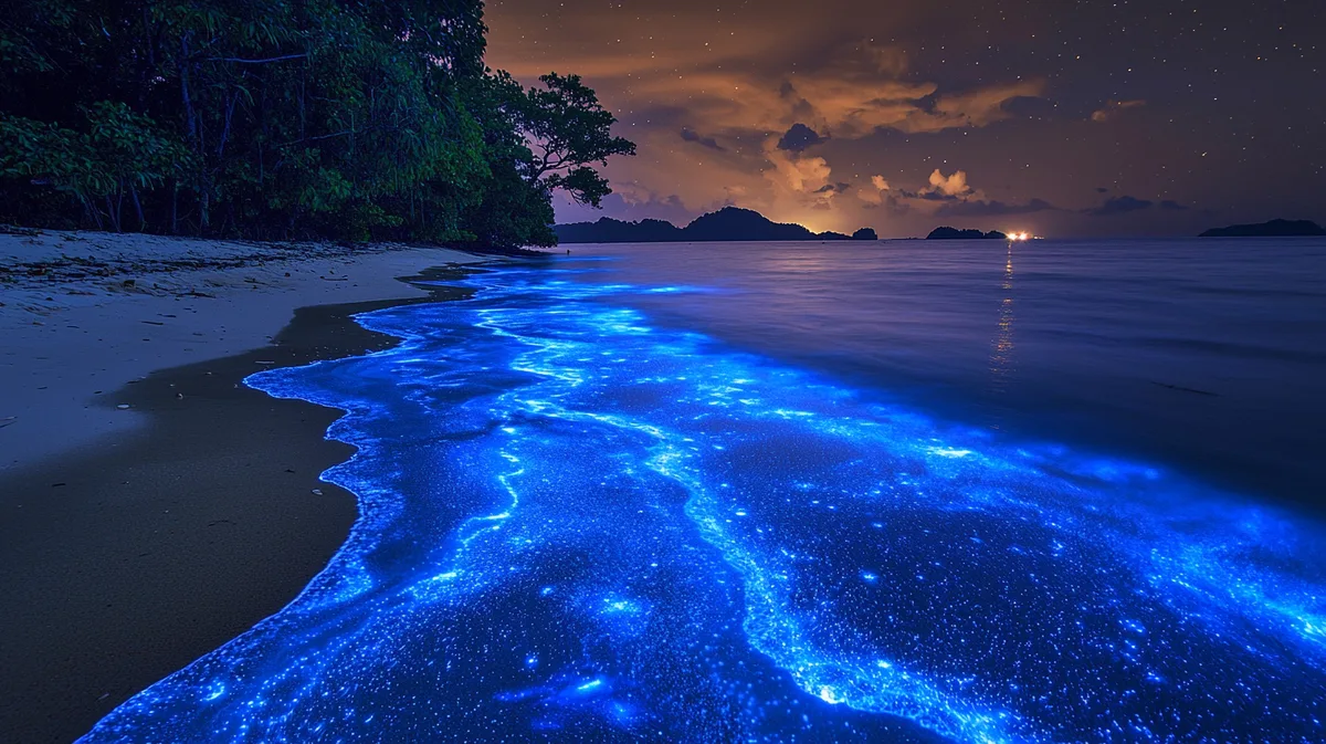 Светящийся планктон в основном представлен одноклеточными растениями - динофлагеллятами. Планктон излучает свет благодаря химическим процессам, называемым биолюминесценцией. При доскональном изучении было выявлено, что это не что иное, как условный рефлекс в ответ на раздражение. Оно вызывает электрический импульс, несущийся к клетке, в результате чего вакуоль, наполненная элементарными частицами, генерирует энергию с последующей химической реакцией, выливающейся в поверхностное свечение тела.