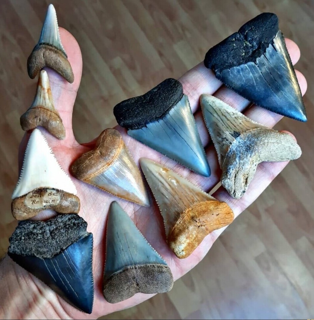 18. Коллекция окаменелых зубов большой белой акулы со всего мира