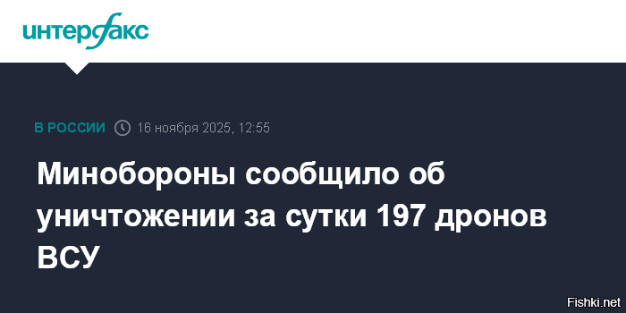 "Средствами противовоздушной обороны сбиты... 197 беспилотных летательных аппаратов самолетного типа", – говорится в сообщении оборонного ведомства.