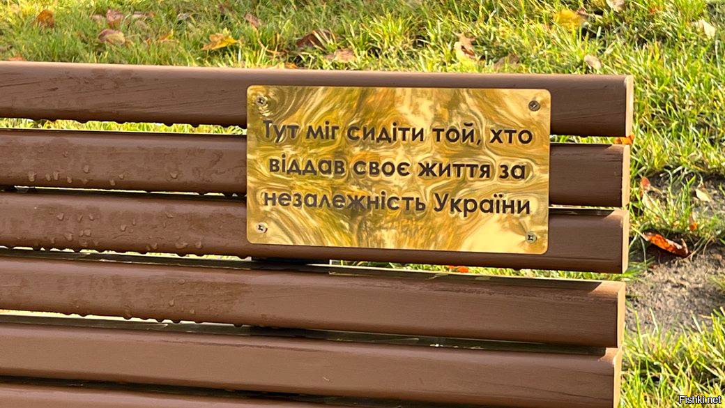 В центре Харькова в сквере установили специальные таблички. Мол, "тут мог сидеть захисник". Инициатива согласована с мэрией и оплачена из налогов украинцев.