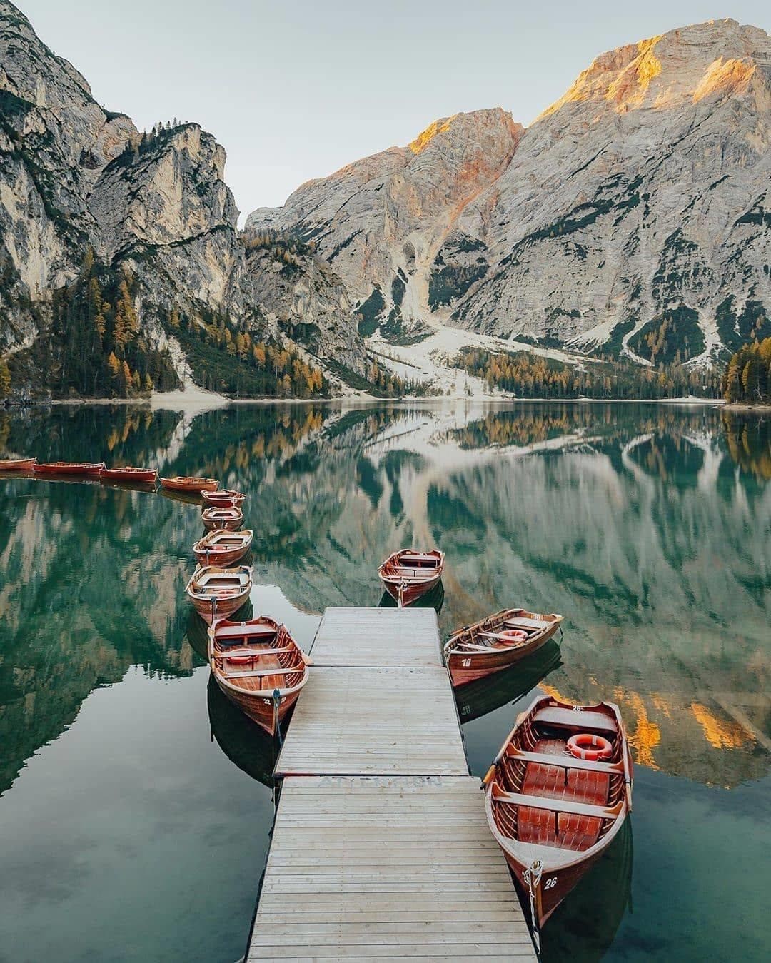 9. Брайес - озеро в Доломитовых Альпах в Южном Тироле, Италия
