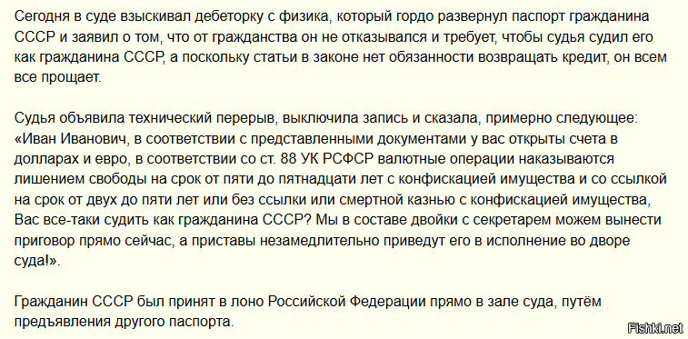 3. А то эти граждане хитрые, как получать блага, так они граждане России, а как платить по счетам, так СССР.