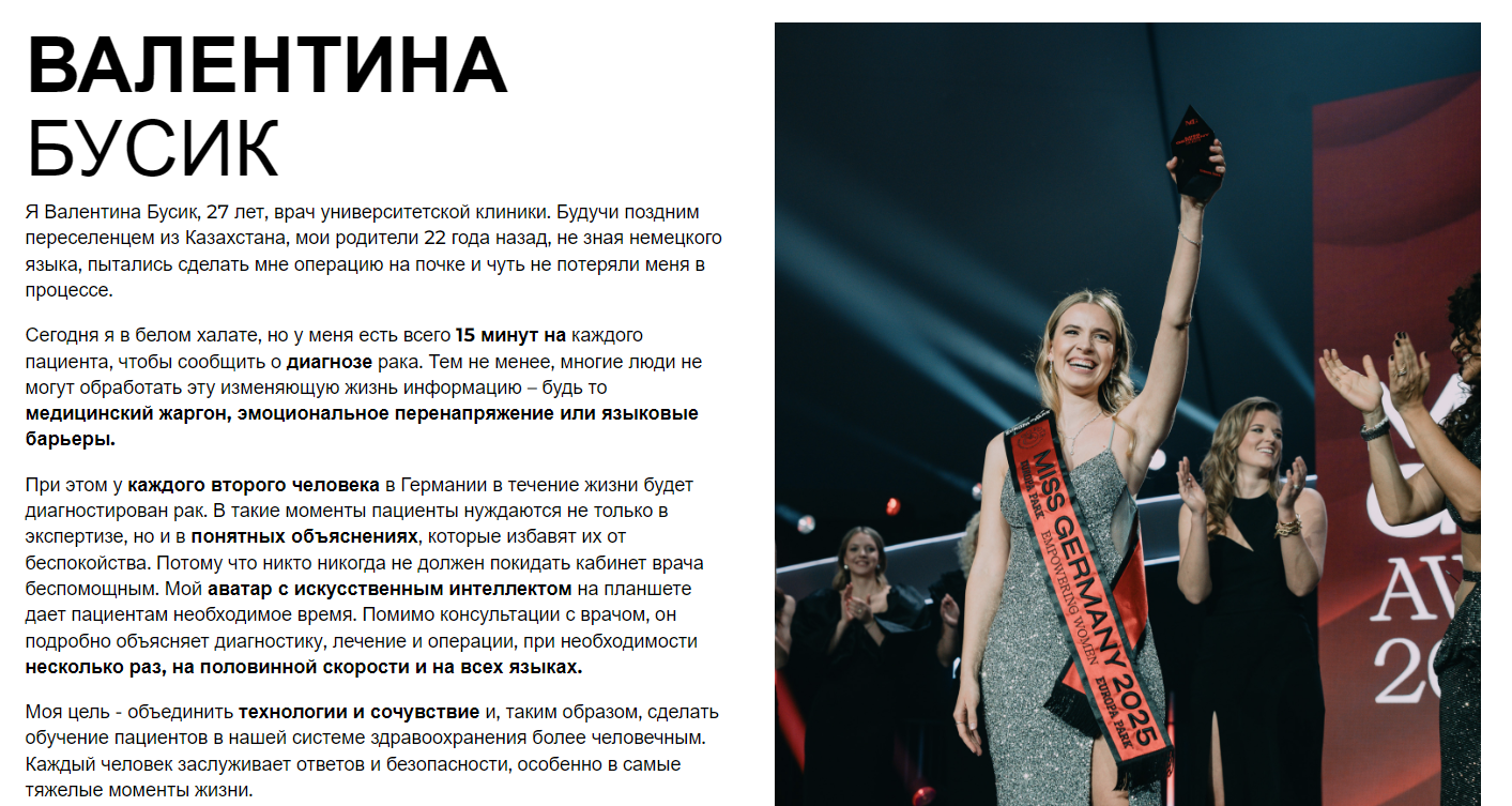 Впрочем, никого не удивляет, что среди претенденток на звание Miss Germany Awards не так много коренных немок. Это уже закономерность, если учесть, что в 2024 году королевой красоты в Германии стала уроженка Тегерана. В 2025 году в конкурсе победила уроженка Казахстана Валентина Бусик.