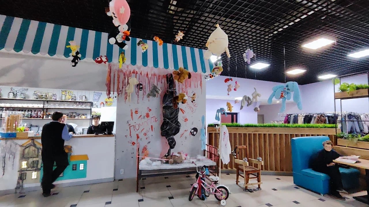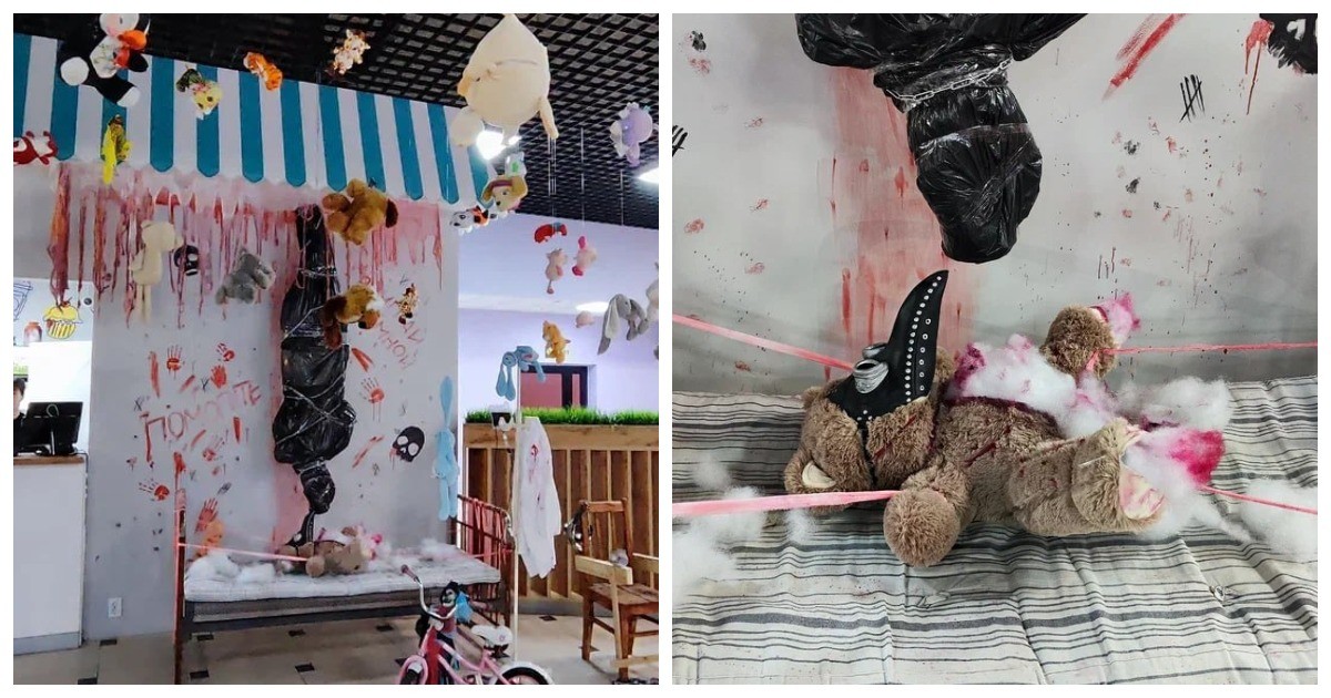 Как рассказала блогер Екатерина Кузьмина, её подруга заказала в развлекательном центре «Софи-Парк» на день рождения дочери тематическую вечеринку. Она ожидала увидеть в качестве декораций традиционные тыквы к Хеллоуину, но её там встретил «муляж человеческого тела в чёрном мешке, подвешенный в петле», «изувеченные мягкие игрушки со следами, имитирующими пытки и убийство», а также «композиция на детской кровати, где плюшевый медведь был растянут и привязан за лапы».
