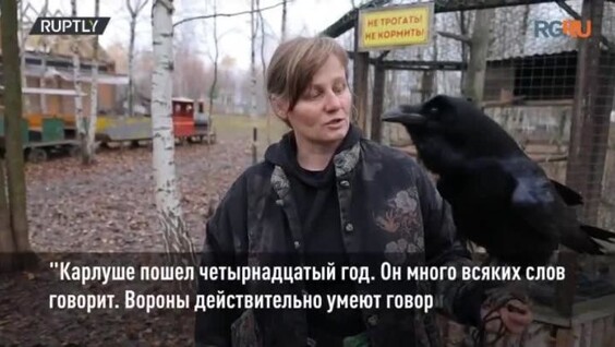 Вороны входят в число самых умных птиц в мире. Пернатый по кличке Карлуша болтает на разные темы и даже смеётся по-человечески.