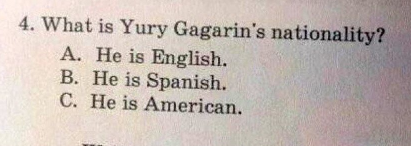 Я всегда думал, что Юрий Гагарин - это русский космонавт. Но в учебнике по английскому языку на выбор предлагают три варианта ответа, где не фигурирует слово "Russian".