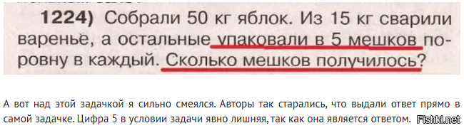 А вот над этой задачкой я сильно смеялся. Авторы так старались, что выдали ответ прямо в самой задачке. Цифра 5 в условии задачи явно лишняя, так как она является ответом.